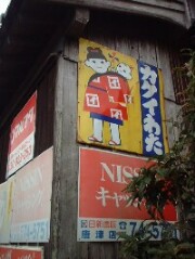 | わたくしのなかでは スター扱いの「カクイわた」 鹿児島県のメーカーです。 カクイわたは九州一円で 見かけますが とりわけ佐賀県のものは 状態がいいように思われます。 福岡県筑後地区でも よくありますが 錆びたものがほとんどです。 @二枚張り合わせの大判。 右下にサラ金が割り込んでいる のが痛々しいです。 切り取ったんでしょうか? A大判。下にちっちゃく水原弘 DF海浜地帯で潮風を 受けるであろうにこの輝き! |